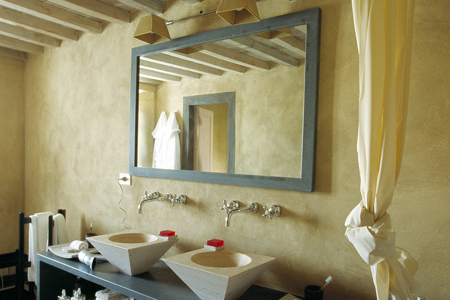 Dieses L-förmige Gebäude war eine Ruine, als die Besitzerin und ihr Mann es kauften. Glücklicherweise konnten einige alte Zeichnungen, die in den örtlichen Archiven gefunden wurden, als Richtlinie herangezogen werden, aber im Übrigen wurde ihnen viel Spielraum gegeben, um das Haus auf ihre eigene, ganz persönliche Art und Weise zu gestalten, ohne sich auf vorhandene Merkmale zu beschränken, sondern ausgestattet mit einem riesigen Wissen über lokale Architektur und zeitgenössischem Design. Das Ergebnis ist eine ausgewogene Mischung aus Alt und Neu.