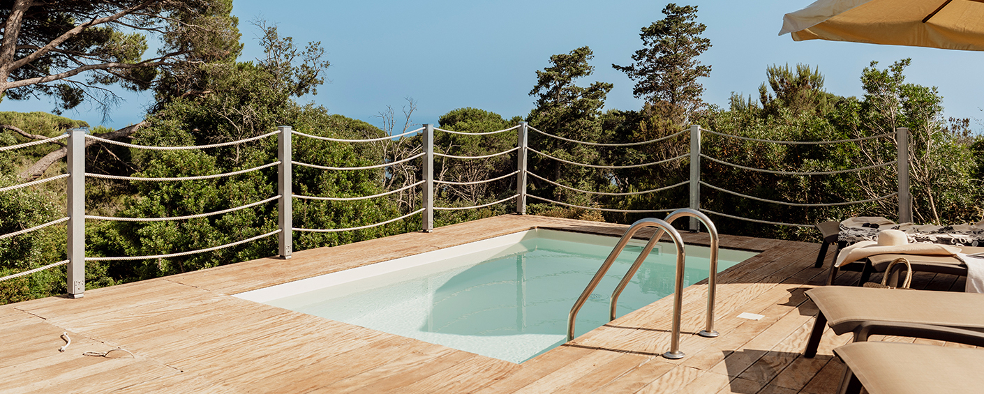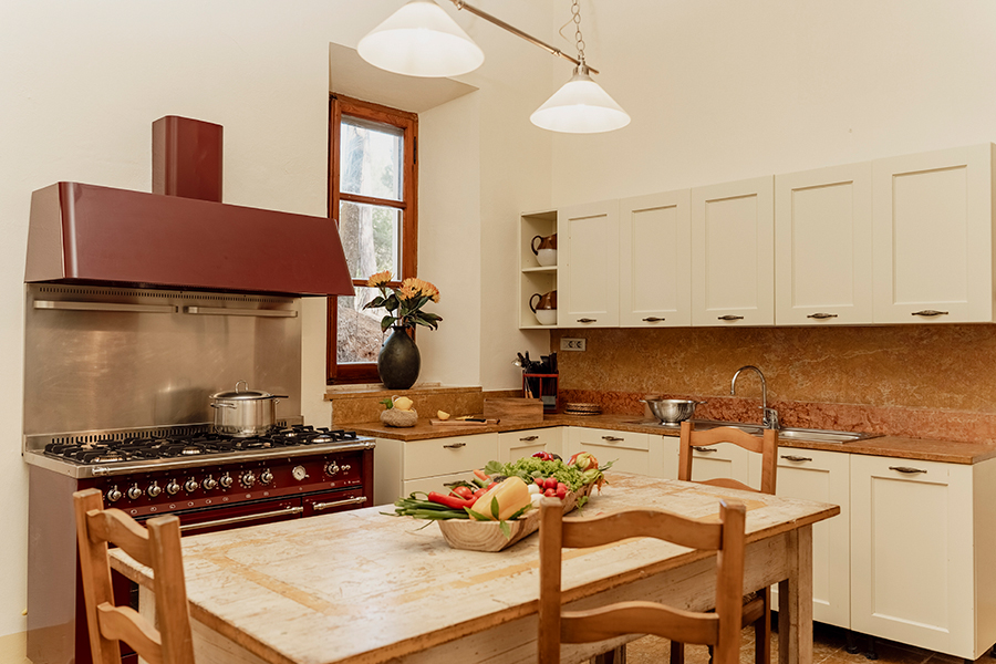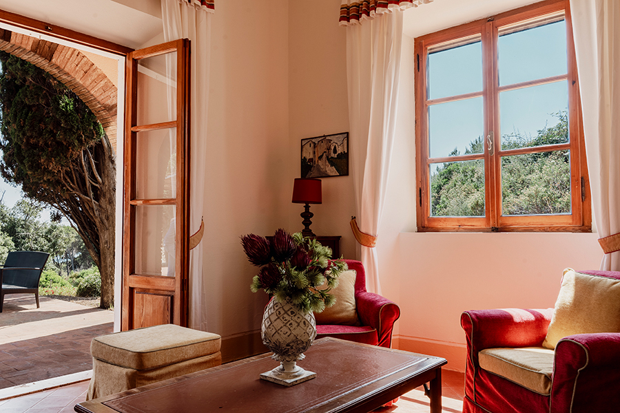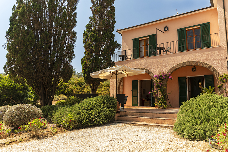 Das Haus gehört zu einer großen Ferienanlage: Etwa 450 Hektar Wald, Weinberge, Obstplantagen und Mittelmeer-Macchia bedecken die Hänge bis zum Meer hinunter, wo private Strände den Gästen dieser Ferienanlage zur Verfügung stehen. Der Küstenstreifen zieht sich 12 km hin, wobei sich kleine Strände und Buchten mit den steilen Felsen abwechseln. Das Feriendorf bietet eine Vielzahl von Aufenthaltsmöglichkeiten: In der Anlage gibt es eine alte Herrschaftsvilla, die geschickt zu einem kleinen Hotel umgebaut wurde, mehrere Wohnungen, die in den Gutshöfen "Fattorien" untergebracht sind, einige Häuser, die sich hier und da in den Pinienwäldern am Meer befinden sowie drei verschiedene freistehende Villen, die hier angeboten sind: Villa Ape, Villa Agave und Villa Eucalipto. Sie liegen an privaten Sträßchen, die zum Meer führen. Im Jahr 2006 wurden sie komplett restauriert, verfügen über einen privaten Pool mit herrlichem Meerblick und sind stilvoll eingerichtet.