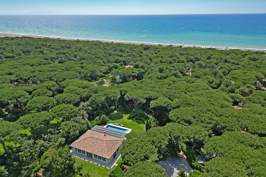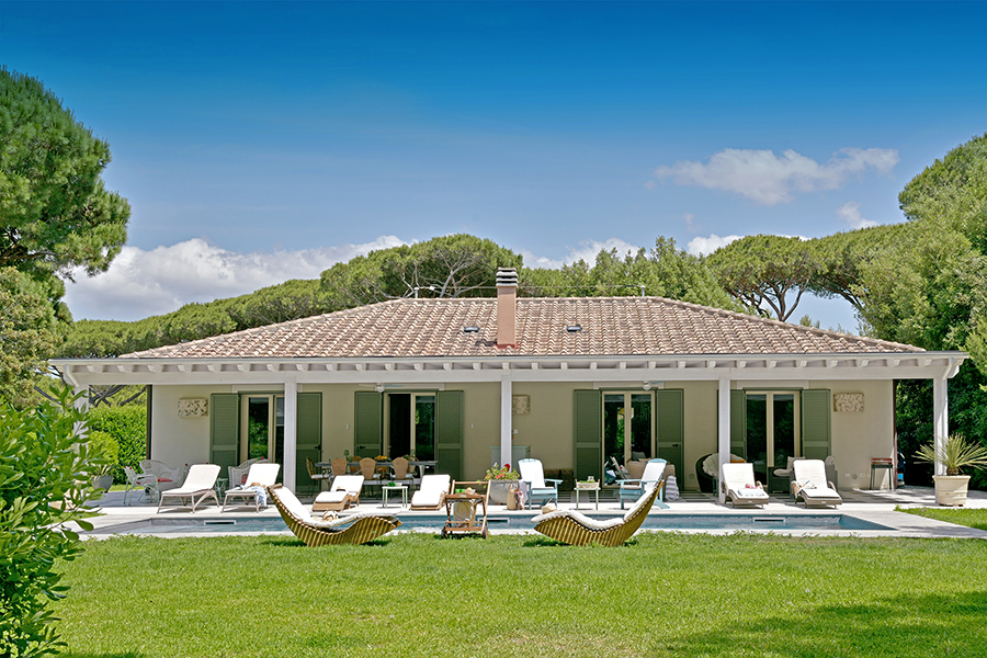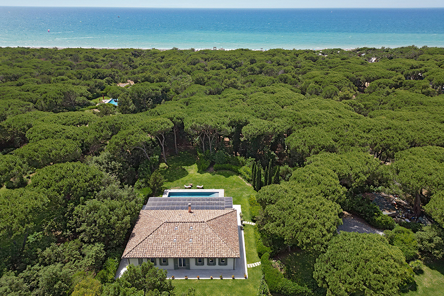 Das attraktive, kürzlich erbaute Ferienhaus ist von einem üppig blühenden Garten mit Rosen, Bougainvilleen, Zypressen und Pinien umgeben und bietet den perfekten Rahmen für einen himmlischen Strandurlaub an einer der schönsten Küsten Italiens.