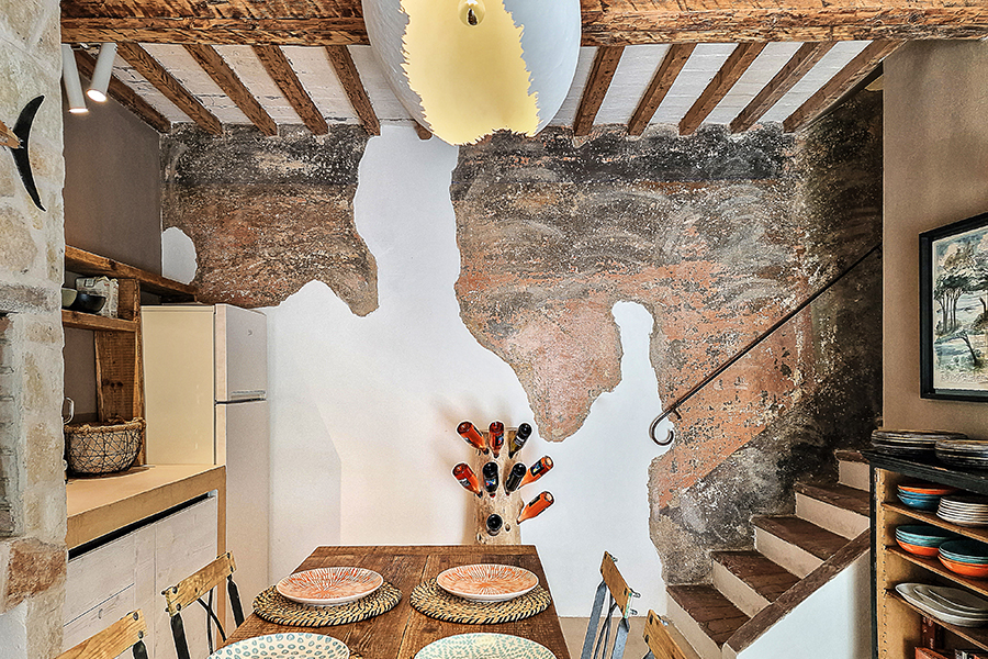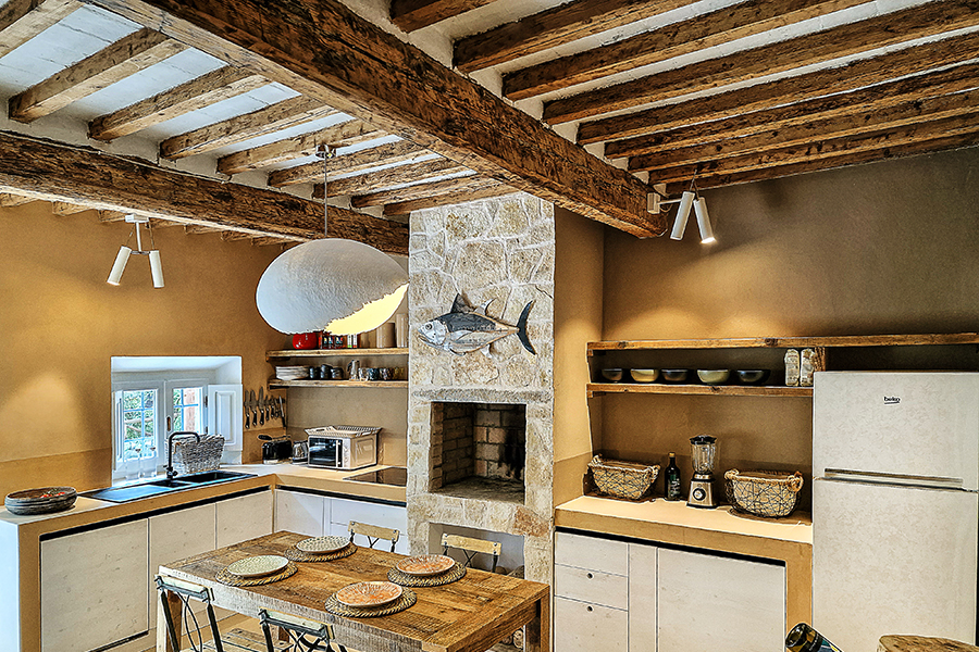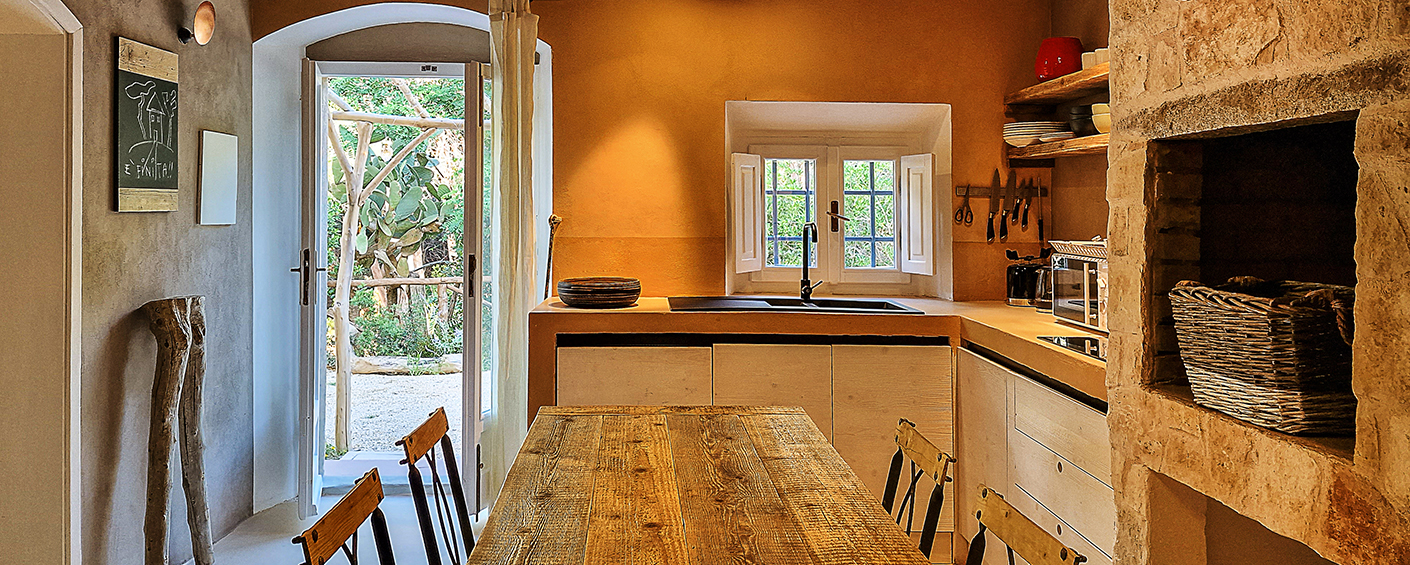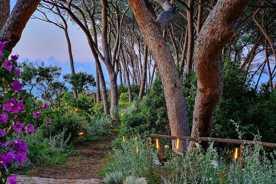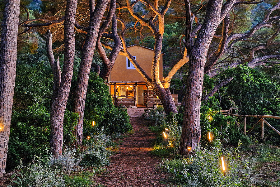 Das Haus gehört zu einer großen Ferienanlage: Etwa 450 Hektar Wald, Weinberge, Obstplantagen und Mittelmeer-Macchia bedecken die Hänge bis zum Meer hinunter, wo private Strände den Gästen dieser Ferienanlage zur Verfügung stehen. Der Küstenstreifen zieht sich 12 km hin, wobei sich kleine Strände und Buchten mit den steilen Felsen abwechseln. Das Feriendorf bietet eine Vielzahl von Aufenthaltsmöglichkeiten: In der Anlage gibt es eine alte Herrschaftsvilla, die geschickt zu einem kleinen Hotel umgebaut wurde, mehrere Wohnungen, die in den Gutshöfen "Fattorien" untergebracht sind und kleine Häuser, die sich hier und da in den Pinienwäldern am Meer befinden.