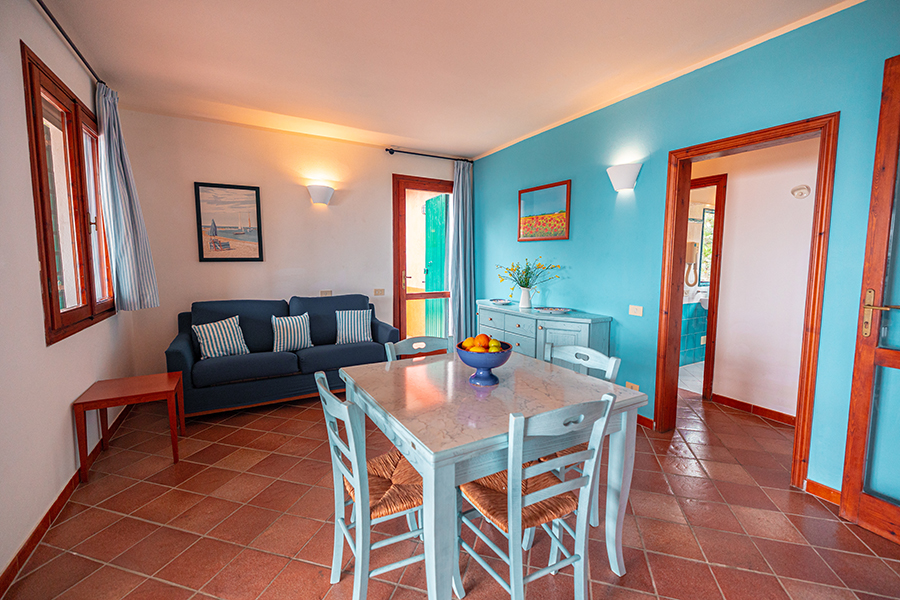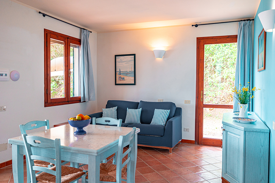 Villette Gemini sind "Zwillingshäuser": Die Gebäude und die Raumaufteilung sind identisch. Die Ausstattung ist zweckmäßig, und es finden jeweils 4+2 Personen Platz. Die Häuser befinden sich oberhalb des Ginepro Strandes (der größte Strand), der über einen Pfad durch Büsche und Felsen in nur 20 Minuten zu erreichen ist. Um das Zentrum des Feriendorfes zu erreichen (ca. 1 km), können Sie entweder durch einen Wald gehen, oder zu Fuß (bzw. mit dem Auto) durch die Felder des Anwesens. Vom Feriendorf aus können Sie andere Strände mit einem Shuttle-Bus erreichen.