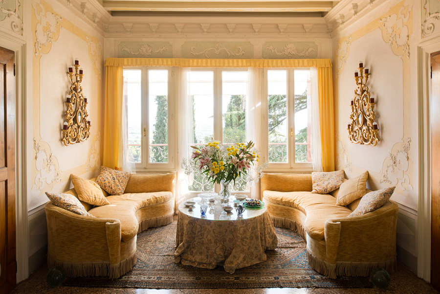 Villa Rubini ist eine prächtige historische Villa im charmanten Städtchen Asolo. Hoch oben auf einem Hügel gelegen, bietet sie einen atemberaubenden Panoramablick über die Ebene von Asolo, der sich bis zu den Euganeischen Hügeln und an klaren Tagen sogar bis nach Venedig erstreckt. Die Villa befindet sich am Rande des malerischen Asolo. Obwohl sie ruhig und abgeschieden liegt, ist das historische Zentrum Asolos über die Via San Martino nur einen kurzen Spaziergang entfernt. Der von alten Bäumen beschattete Landschaftspark erstreckt sich über mehrere Terrassenebenen.