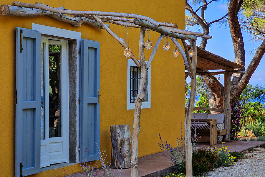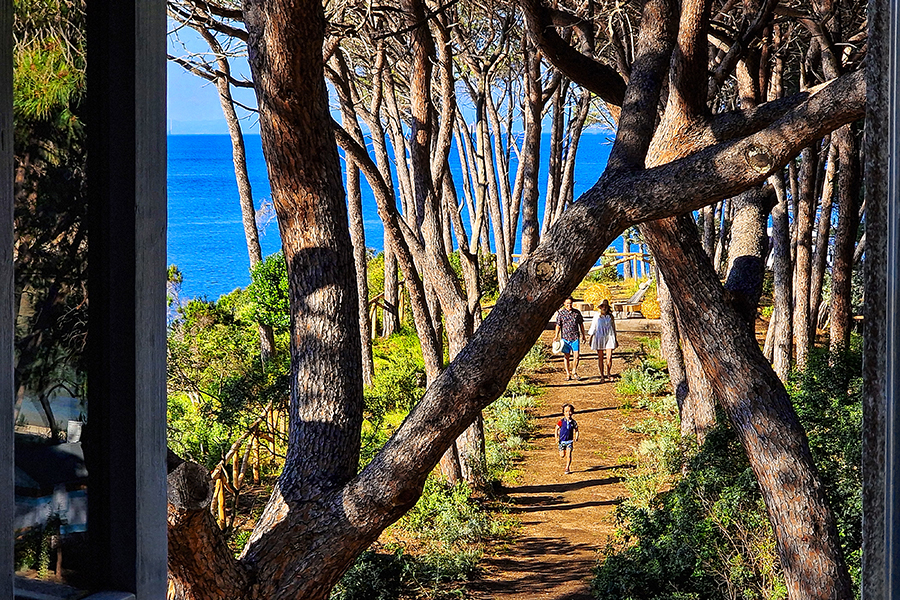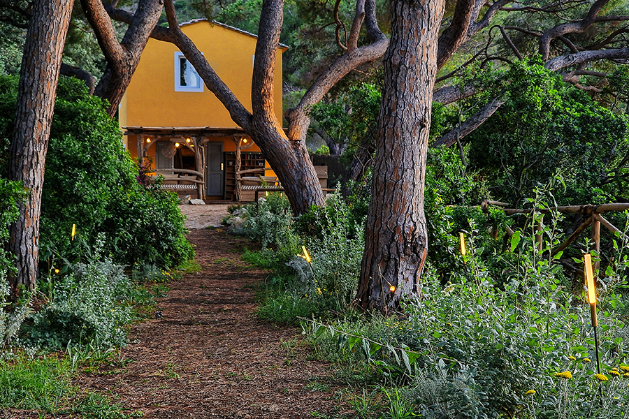 Das Haus gehört zu einer großen Ferienanlage: Etwa 450 Hektar Wald, Weinberge, Obstplantagen und Mittelmeer-Macchia bedecken die Hänge bis zum Meer hinunter, wo private Strände den Gästen dieser Ferienanlage zur Verfügung stehen. Der Küstenstreifen zieht sich 12 km hin, wobei sich kleine Strände und Buchten mit den steilen Felsen abwechseln. Das Feriendorf bietet eine Vielzahl von Aufenthaltsmöglichkeiten: In der Anlage gibt es eine alte Herrschaftsvilla, die geschickt zu einem kleinen Hotel umgebaut wurde, mehrere Wohnungen, die in den Gutshöfen "Fattorien" untergebracht sind und kleine Häuser, die sich hier und da in den Pinienwäldern am Meer befinden.