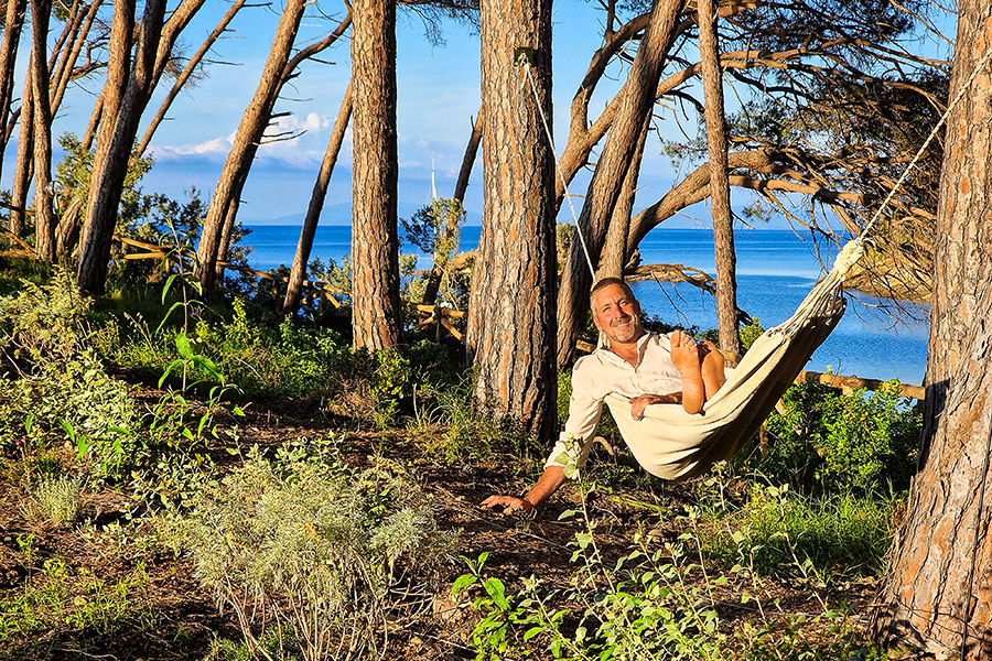 Die Insel: Die Insel Elba ist ein Paradies für Sportler - für all' diejenigen, die einen aktiven Urlaub in der Natur und am Wasser zugleich wünschen. Nur 10 km vom Festland entfernt und mit einer Fläche von 224 Quadratkilometern ist es die größte Insel des toskanischen Archipels und die drittgrößte Insel Italiens. Ein großer Teil Elbas und der anderen toskanischen Inseln (Pianosa, Capraia, Montecristo, Giglio and Giannutri) stehen unter Naturschutz des toskanischen Archipels. Das Klima ist immer mild mit einer Durchschnittstemperatur von ca. 16°. Der Durchschnitt im Winter liegt bei 10°, im Frühling bei 14°, im Sommer bei 23° und im Herbst bei 17°. Es gibt über 70 Strände an der Küste - manche sind ruhig, andere stärker besucht. Tiefblaues, klares Wasser, weiße Sandstrände und Felsenbuchten, kombiniert mit immergrüner Macchia, Eucalyptus und Korkeichen bilden die lanschaftliche Faszination Elbas. Zahlreiche, reizvolle Badebuchten an der knapp 150 km langen Küste, die vom in allen Blautönen schillernden Meer umspült werden, warten nur darauf, entdeckt zu werden.