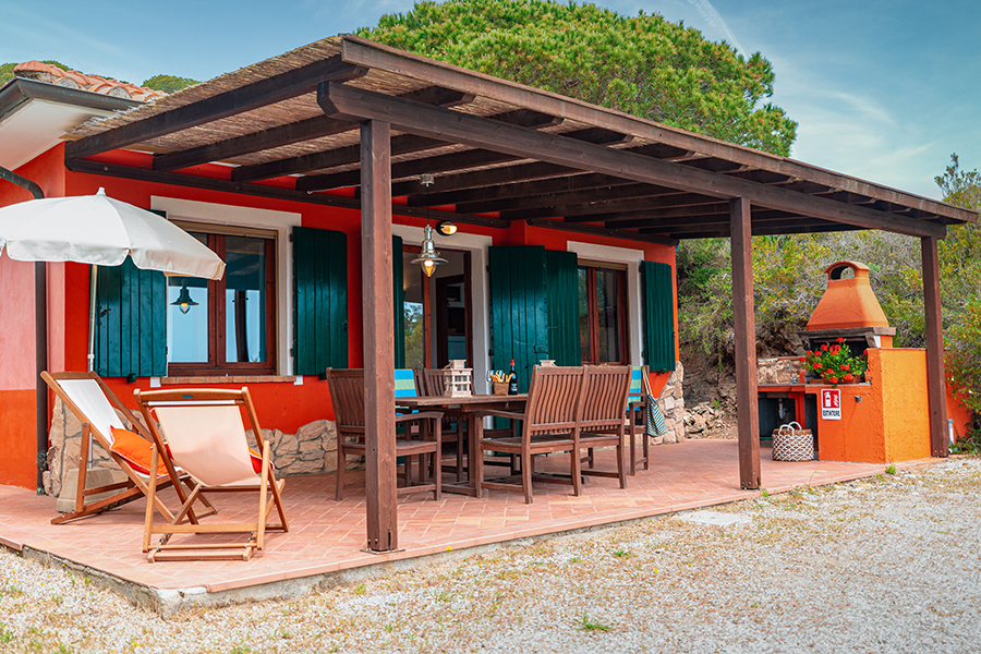 Die beiden Häuser gehören zu einer großen Ferienanlage: Etwa 450 Hektar Wald, Weinberge, Obstplantagen und Mittelmeer-Macchia bedecken die Hänge bis zum Meer hinunter, wo private Strände den Gästen dieser Ferienanlage zur Verfügung stehen. Der Küstenstreifen zieht sich 12 km hin, wobei sich kleine Strände und Buchten mit den steilen Felsen abwechseln. Das Feriendorf bietet eine Vielzahl von Aufenthaltsmöglichkeiten: In der Anlage gibt es eine alte Herrschaftsvilla, die geschickt zu einem kleinen Hotel umgebaut wurde, mehrere Wohnungen, die in den Gutshöfen "Fattorien" untergebracht sind und kleine Häuser, die sich hier und da in den Pinienwäldern am Meer befinden.